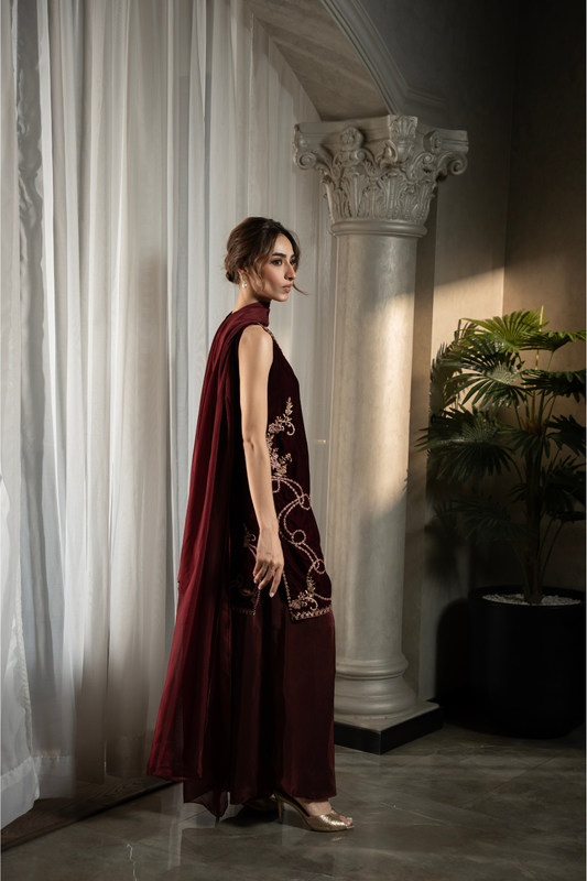 Burgundy Rouge | Khaddar Silk