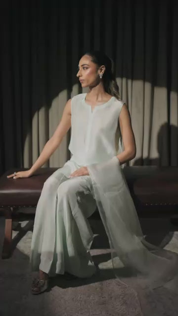 This exquisite cream outfit features a beautifully embroidered neckline. Paired with a flowing shalwar, it creates a timeless silhouette perfect for festive occasions, effortlessly blending tradition with contemporary luxury.